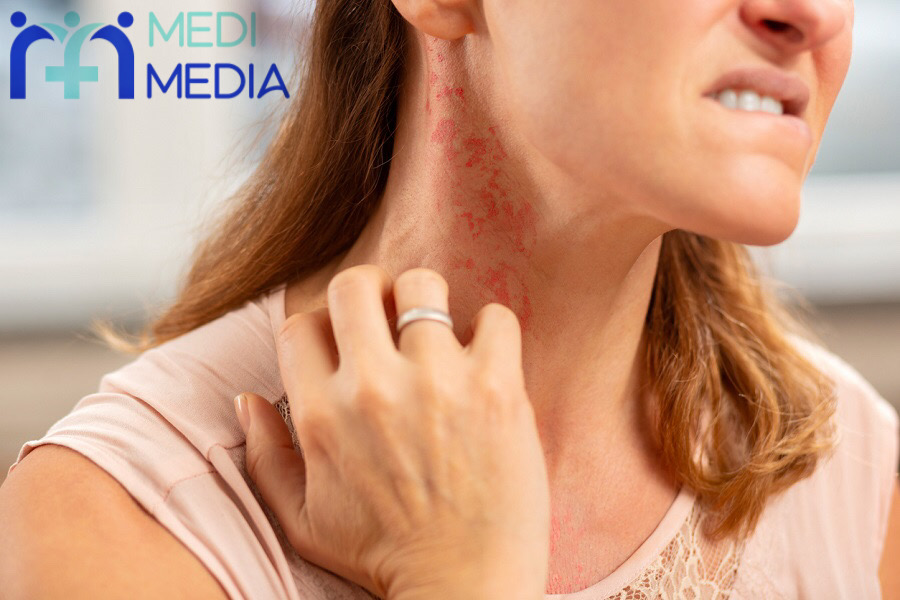 پیدایش لکه های پوستی کهیری با حدود مشخص حاشیه ی قرمز برآمده و مرکز رنگ پریده