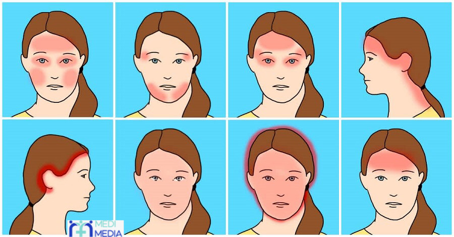 فرد درد را به صورت دو طرفه در پیشانی حس می کند و احساس درد در سمت ضایعه بیشتر است .